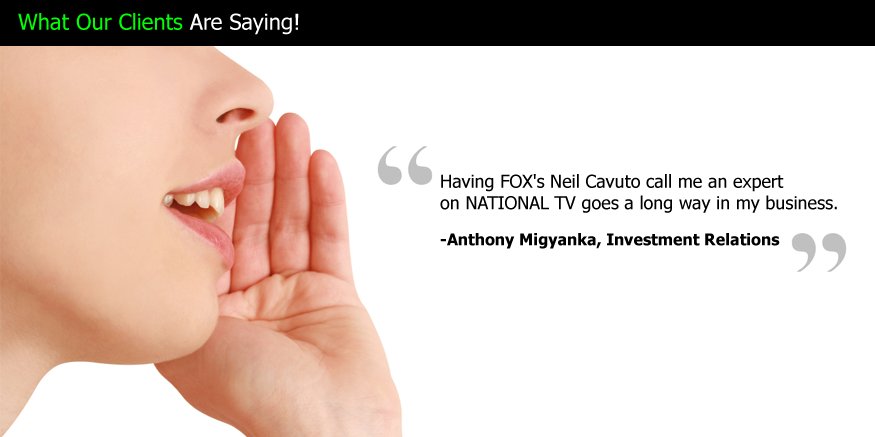 - “Thanks for booking me on FOX Business! It should be up on my site soon. It was great to hear your voice yesterday. I was thrilled to find out I was doing everything you asked of me. I consider this a partnership…and I couldn’t be happier. Thank you for all your help.”